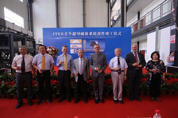 经过近几年的国内联合攻关与实施,2017年7月26日,ITER磁体系统首个部件—PF4过渡馈线按期竣工。作为项目关键节点,来自ITER组织、中国国际核聚变能源计划执行中心、中科院等离子体物理研究所(ASIPP)及主要制造商相关代表共同见证了部件竣工。该部件需在与其相关的ITER装置主机建筑施工之前进行预埋,其按期保质竣工不仅会对ITER项目整体进度产生积极影响,也为馈线系统后续产品的制造奠定了良好基础。各方代表对馈线系统的总承包商—ASIPP所能够按期保质完成产品给予了高度肯定。中国国际核聚变能源计划执行中心罗德隆主任对ASIPP及主要制造商通力攻关、协同实施所取得可喜进展表示祝贺的同时,希望大家不忘初心,坚持质量优先,加强过程控制,做好风险防控,按期保质完成后续产品的制造与交付任务,将中方产品一次交付合格率100%的记录得以继续保持。