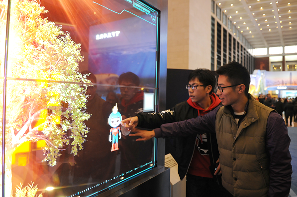 “中国聚变能源开发与ITER计划”的展项由透明互动主屏和侧屏、直径3米的LED显示球以及直径2.4米的ITER装置模型三个部分联合演绎。演示全部过程中,侧屏、LED球和ITER模型将以不同的画面和形式配合主屏幕的显示,人们可以通过触摸屏幕的“手型区域”点亮挂在空中的“太阳”。