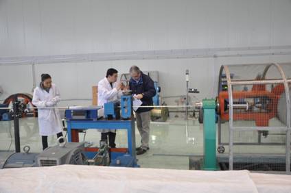 罗德隆副主任等现场检查CC导体穿缆、成型等生产过程