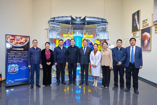 10月31日,项目工程处副处长董琳代表核聚变中心向国家级爱国主义教育示范基地——青海原子城纪念馆捐赠了国际热核聚变实验堆(ITER)模型,该模型以1:12的比例对ITER装置进行了等比缩小。随后,中核集团核工业西南物理研究院聚变科学所现场展示了ITER装置模型的运行原理。ITER模型作为我国新时期核聚变事业继往开来,迈入崭新篇章的历史见证,同时也承担着继续在青海地区向公众普及核聚变知识的使命。