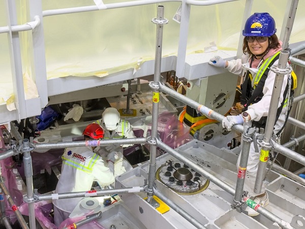 ITER磁体安装工程师克里斯泰勒·布瓦耶介绍,这是安装工作的关键一步,也极具复杂性。线圈间连接作业操作空间极度受限,安装公差要求严苛,必须与其他施工环节严格衔接。扇段模块均为超重构件,连接点位的匹配精度需控制在数毫米以内。