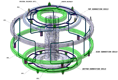 在ITER托卡马克装置中,校正场线圈包括6个底部线圈(BCC)、6个顶部线圈(TCC)和6个侧线圈(SCC)。