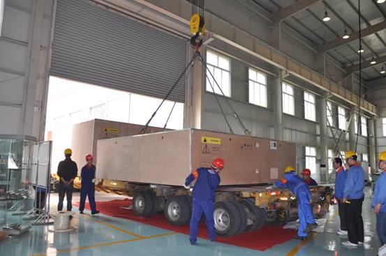 PF5 导体共三件,每件宽度为4.45米,属超宽大件设备,在中国和法国境内均需要办理大件运输许可证。为了保证运输安全,我们要求运输公司在陆运过程中配备前后车辆护送,以防止发生紧急情况。同时,箱体在运输过程全程配备了三维加速度仪,全程记录运输过程货物受力情况分析,以便总结和改进包装以及物流操作技术。本次海运过程也较之传统操作方式有所创新,采用了船边装卸方式,全程绑扎和固定过程均由第三方专业人员监控。ITER组织、欧盟国内机构、中方运输企业代表和法国运输公司参与了卸货和检验过程,欧盟国内机构代表检验后在现场签收单上确认签字。