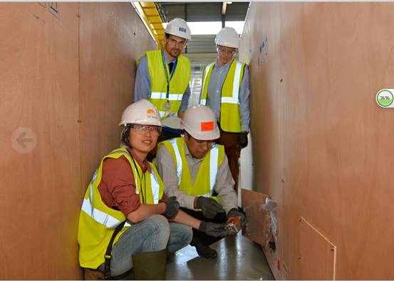 图为ITER组织运输负责人、中方物流企业代表、ITER组织磁体组负责人、欧盟技术负责人对PF5假导体的运输情况进行检测。图片来自ITER官方网站