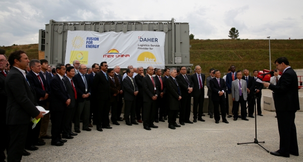2016年6月16日上午,来自各成员方的政府代表和专家、中方制造方代表、运输方代表共同见证了中方首个超大件运抵ITER组织总部。ITER组织总干事伯纳德·比戈高度评价中方在科技部特别是核聚变中心的统筹协调管理下,按时、保质完成中方承担的ITER采购包制造任务,在成员方中处于领先地位。科技部阴和俊副部长代表中方简要回顾了设备制造和运输过程,强调本次运抵的中方设备不仅是PPEN采购包的一个重要时间节点,也是ITER项目总体进展中的一个重要里程碑;阴和俊副部长指出中方有能力、有信心完成自己承担的制造任务,同时坦诚希望与各方一道共同解决建造阶段遇到的任何问题,特别是有意承担影响项目总进度的其他方采购包制造任务,以共同推进项目实施。