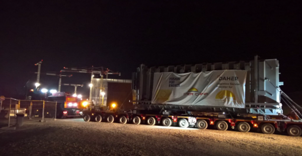 2016年6月10日凌晨,中方交付ITER组织的首个超大件设备“脉冲高压变电站(PPEN)”主变压器及附件顺利运抵位于法国圣宝莱杜朗兹的ITER组织总部现场。