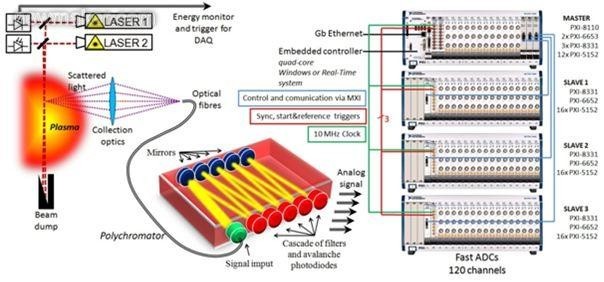 温度和密度分布是托卡马克核聚变装置中重要的诊断参数,如何精确测量高达几千万度甚至上亿度等离子体内部的温度密度,是一个重要的测量问题。自从激光器问世以来,激光散射已经发展成为磁约束等离子体研究中的重要诊断方法之一,可以测量电子温度和密度的空间分布和时间演化。