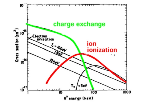 中性束在等离子体中的吸收主要是通过三种原子过程实现的,即电荷交换,离子引起的电离和电子引起的电离。我们用H表示原子的种类。下标b表示注入的中性束粒子,下标p表示等离子体中的粒子,上述三种原子过程可以表示为: