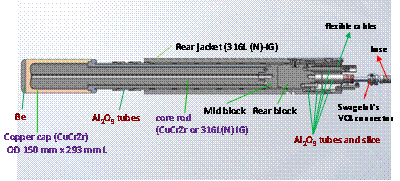 每套GDC 单元需要与相应的真空室内窥视系统(IVVS)(由欧盟承担)共用同一真空室穿透单元,因此,真空室内窥视系统单元在伸入真空室前,需要先将相应的GDC单元收回并停放在GDC电极的圆形贮存空间内,该空间连接到下端口的真空室盲板上。GDC电极横截面如下图所示: