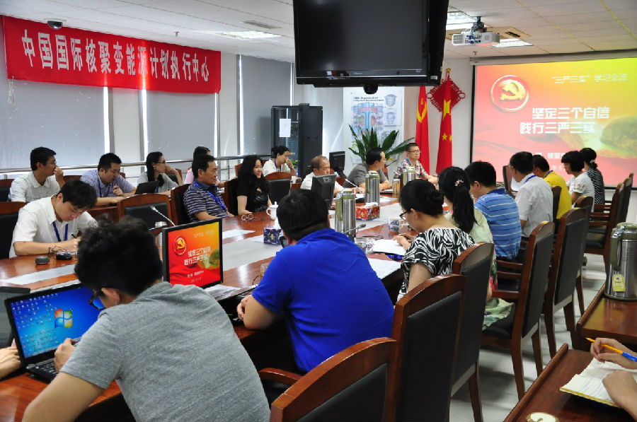 为贯彻落实中央和科技部党组关于“三严三实”专题教育的部署和要求,结合中心2015年党建工作计划,核聚变中心党支部于8月24日开展第二次“领导班子讲党课”活动。支部罗德隆书记主持会议,并对“三严三实”专题教育的近期工作提出具体要求。中心孙键副主任围绕“三严三实”第二专题内容,以“坚定三个自信,践行三严三实”为题给中心全体党员干部上党课。