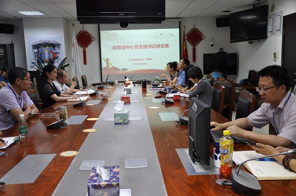 6月29日,为庆祝中国共产党建党97周年,核聚变中心党支部举办了“七一”党日专题活动,由核聚变中心党支部书记罗德隆为中心全体党员干部讲党课。此次党课的主题有两个,分别是“学习《关于进一步激励广大干部新时代新担当新作为的意见》”以及“学习习近平总书记在中央外事工作会议上的重要讲话”。