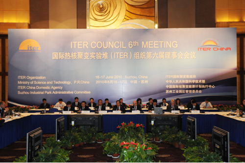 2010年6月16日,国际热核聚变实验堆计划(ITER计划)国际聚变能组织(ITER组织)第六届理事会会议在苏州开幕。全国政协副主席、科技部部长万钢出席开幕式并致欢迎词。万钢对与会的ITER组织理事会成员、各方政府代表、ITER组织总干事、副总干事和高层官员,以及与会专家表示热烈欢迎。